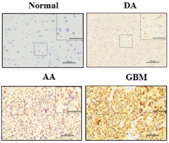 Immunohistochemistry: GBM stained with ARG51678 anti-AMPK alpha 1 phospho (Thr183) + AMPK alpha 2 phospho (Thr172) antibody.