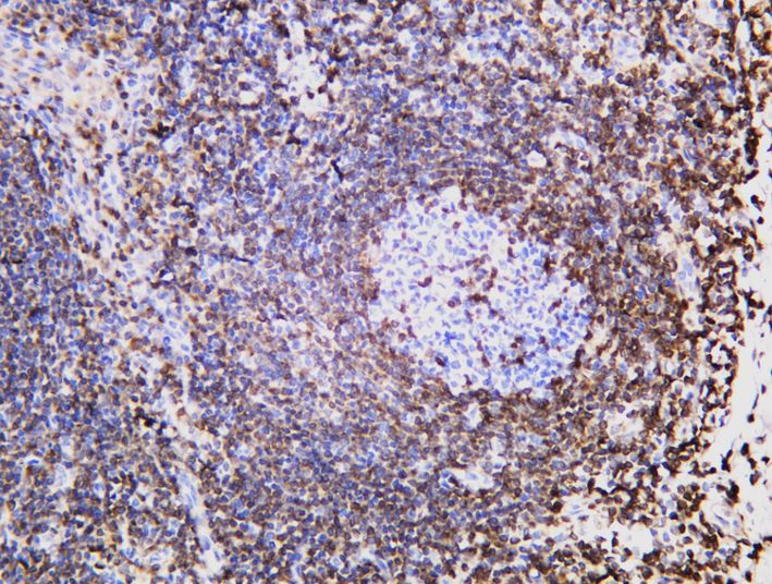 Immunohistochemistry: Human spleen stained with ARG55188 anti-Bcl 2 antibody.