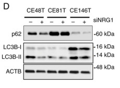 Western blot: ESCC cell stained with ARG55799 anti-LC3B antibody and ARG55040 anti-SQSTM1 / p62 antibody.
