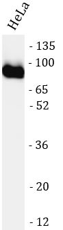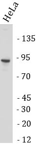 Western blot: Hela stained with ARG67303 anti-CD71 / Transferrin Receptor antibody [3C05].
