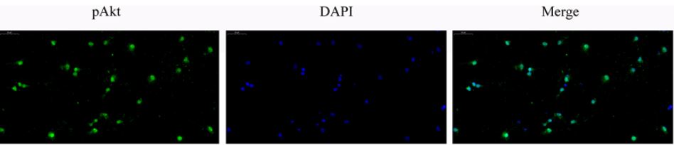Immunofluorescence: Rat neurons stained with ARG51558 anti-Akt phospho (Ser473) antibody.