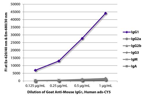| Product Description | Cyanine 5-conjugated Goat Polyclonal antibody recognizes Mouse IgG1 |