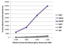 FLISA: The plate was coated with purified Mouse IgG1, IgG2a, IgG2b, IgG3, IgM and IgA. Immunoglobulins were detected with serially diluted ARG21574 Goat anti-Mouse IgG2b antibody (Texas Red) (pre-adsorbed).