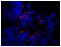 Immunohistochemistry: Frozen section of Mouse lymph node tissue stained with ARG21519 Goat anti-Mouse IgM antibody (TRITC) (pre-adsorbed) followed by DAPI.