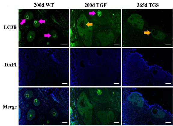 Immunohistochemistry: Porcine ovarian stained with ARG55799 anti-LC3B antibody.