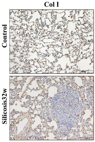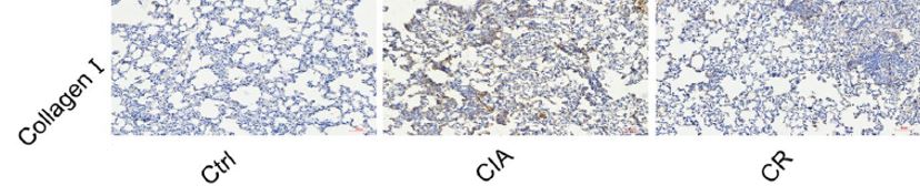 Immunohistochemistry: Mouse lung stained with ARG21965 anti-Collagen I antibody, pre-adsorbed.
