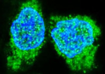Immunofluorescence: HeLa cells stained with ARG42709 anti-4E-BP1 antibody (green).