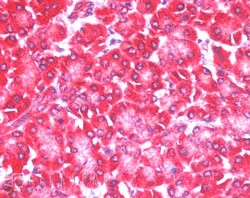 Immunohistochemistry: paraffin embedded Human Pancreas. (Steamed antigen retrieval with citrate buffer pH 6) stained with ARG63405 anti-4E-T / EIF4ENIF1 antibody at 5 µg/ml dilution followed by AP-staining.