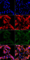 Immunofluorescence: 5% Formaldehyde fixed (5 min) HEK293 cells stained with ARG22619 anti-7-Ketocholesterol antibody [3F7] at 1:50 for 30 - 60 min at RT. Secondary Antibody: Goat anti-Mouse (Alexa Fluor 488) at 1:1500 for 30 - 60 min at RT. Counterstain: Phalloidin Alexa Fluor 633 F-Actin stain; DAPI (blue) nuclear stain. (A,C,E,G) Untreated. (B,D,F,H) Cells cultured overnight with 50 µM H2O2. (A,B) DAPI (blue) nuclear stain. (C,D) Phalloidin Alex Fluor 633 F-Actin stain. (E,F) Primary antibody. (G,H) Composite.