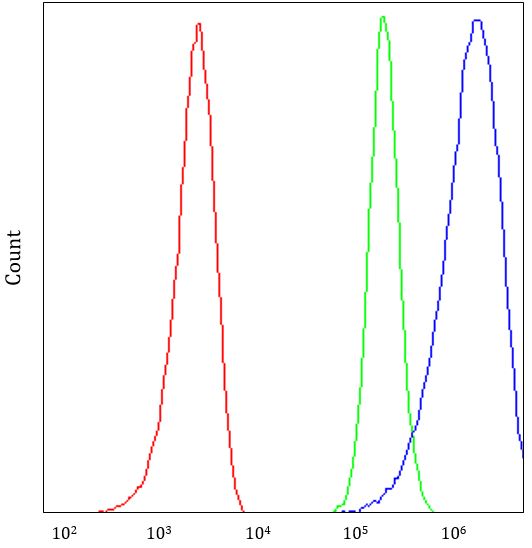 Flow Cytometry: MCF-7 stained with ARG45621 anti-AAMP antibody at 1 µg/10^6 cells dilution.