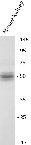 Western blot: Mouse kidney stained with ARG45621 anti-AAMP antibody at 0.5 μg/ml dilution.
