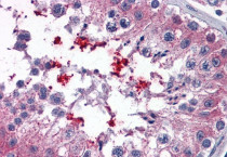 Immunohistochemistry: Paraffin-embedded Human testis tissue. Antigen Retrieval: Steam tissue section in Citrate buffer (pH 6.0). The tissue section was stained with ARG64649 anti-ABCD4 antibody at 3.75 µg/ml dilution followed by AP-staining.