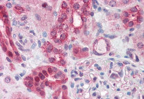 Immunohistochemistry: Paraffin-embedded Human kidney tissue. Antigen Retrieval: Steam tissue section in Citrate buffer (pH 6.0). The tissue section was stained with ARG64649 anti-ABCD4 antibody at 3.75 µg/ml dilution followed by AP-staining.