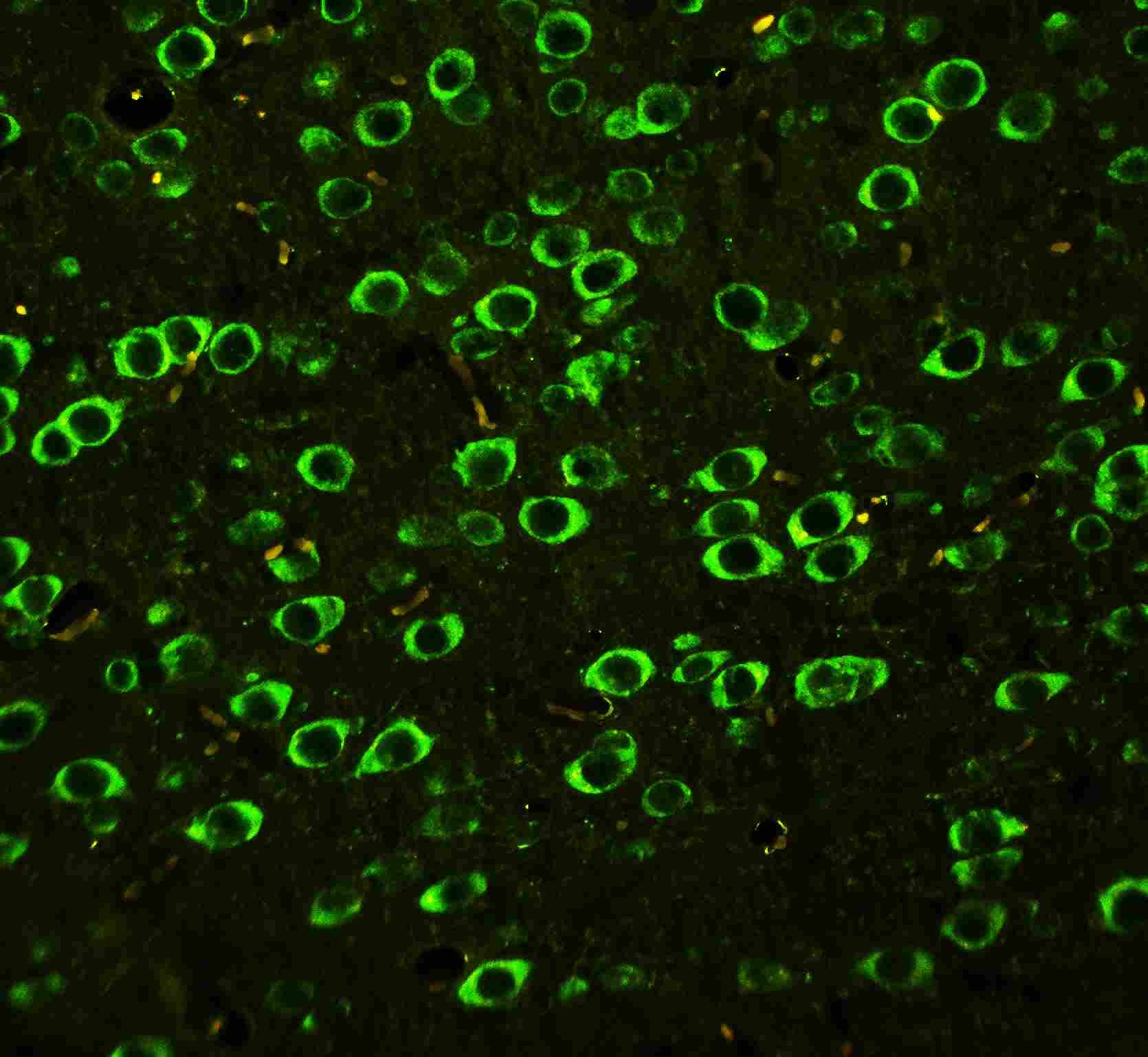 Immunohistochemistry: Paraffin-embedded Rat brain tissue. Antigen Retrieval: Heat mediation was performed in Citrate buffer (pH 6.0) for 20 min. The tissue section was blocked with 10% goat serum. The tissue section was then stained with ARG59210 anti-ABI1 / SSH3BP1 antibody at 1 µg/ml dilution, overnight at 4°C.