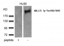 | Product Description | Rabbit Polyclonal antibody recognizes ABL1/2 phospho (Tyr393 / 439) |