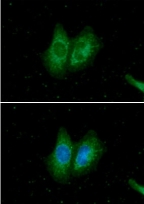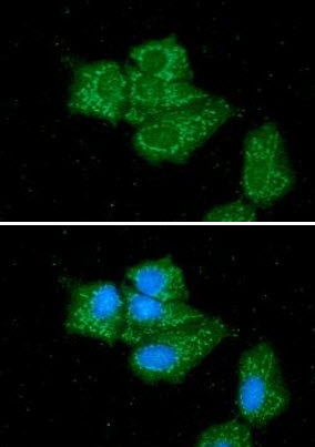 Immunoflorescense: A549 cell line stained with ARG57087 anti-ACADS antibody [8B10] at 1:100 (Green).
