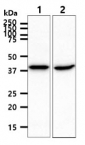 | Storage Instruction | For continuous use, store undiluted antibody at 2-8°C for up to a week. For long-term storage, aliquot and store at -20°C. Storage in frost free freezers is not recommended. Avoid repeated freeze/thaw cycles. Suggest spin the vial prior to opening. The antibody solution should be gently mixed before use. |