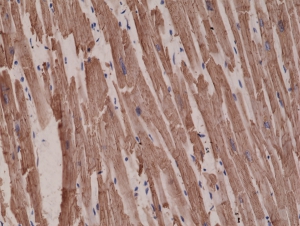 Immunohistochemistry: Formalin-fixed and paraffin-embedded Human heart tissue sections stained with ARG57247 anti-ACTC1 antibody [RM257] at 1:1000 dilution.