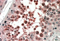 Immunohistochemistry: Paraffin-embedded Human testis (steamed antigen retrieval with citrate buffer pH 6.0) stained with ARG64410 anti-ACVR1 / ALK2 antibody at 4 µg/ml dilution followed by AP-staining.