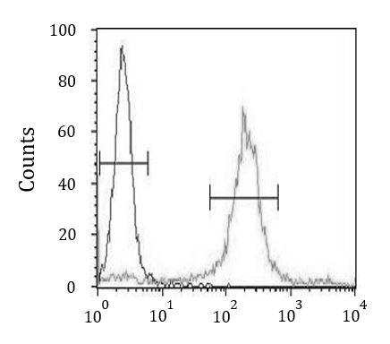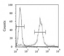 Flow Cytometry: WiDr cells stained with ARG57813 anti-ADAM19 antibody (right histogram) or without primary antibody as control (left histogram), followed by incubation with FITC-labelled secondary antibody.