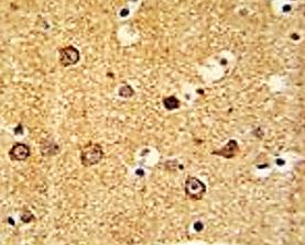 Immunohistochemistry: Formalin-fixed and paraffin-embedded Human brain tissue stained with ARG57813 anti-ADAM19 antibody.