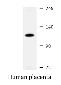 Western blot: 20 µg of Human placenta lysate stained with ARG57813 anti-ADAM19 antibody at 1:1000 dilution.