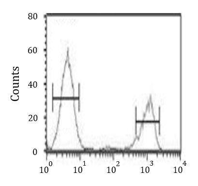 Flow Cytometry: K562 cells stained with ARG55167 anti-ADH7 antibody (right histogram) or without primary antibody control (left histogram), followed by incubation with FITC labelled secondary antibody.