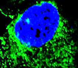 Immunofluorescence: NCI-H460 cells stained with ARG55167 anti-ADH7 antibody (green). DAPI (blue) for nuclear staining.