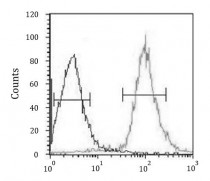 Flow Cytometry: HepG2 cells stained with ARG55425 anti-AHSG antibody (right histogram) or without primary antibody control (left histogram), followed by incubation with FITC labelled secondary antibody.