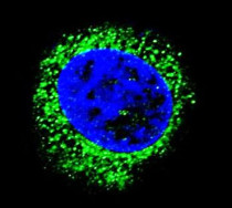 Immunofluorescence: HepG2 cells stained with ARG55425 anti-AHSG antibody (green). DAPI (blue) for nuclear staining.