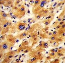 Immunohistochemistry: Formalin-fixed and paraffin-embedded Human hepatocarcinoma stained with ARG55425 anti-AHSG antibody.