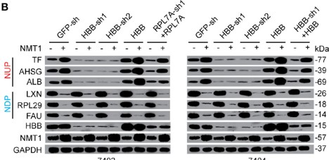 Western blot: Bel-7402 stained with ARG54036 anti-Albumin antibody and ARG55425 anti-AHSG antibody.