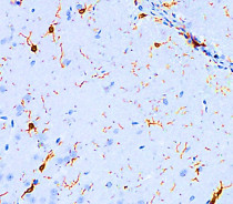 Immunohistochemistry: Paraffin-embedded mouse brain tissue stained with ARG67006 anti-AIF1 / Iba 1 antibody at 1:200 dilution. Antigen Retrieval: Boil tissue section in Citrate buffer (pH 6.0).