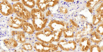 Immunohistochemistry: Paraffin-embedded Human kidney tissue. Antigen Retrieval: Heat mediation was performed in Citrate buffer (pH 6.0). The tissue section was stained with ARG63468 anti-AKR1A1 / Aldehyde Reductase antibody at 5 µg/ml dilution followed by HRP-staining.