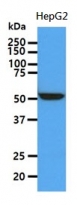 Western blot: 40 µg of HepG2 cell lysate stained with ARG57061 anti-ALDH5A1 antibody [17F5] at 1:1000.
