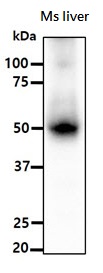 Western blot: 40 µg of Mouse liver tissue extract stained with ARG57061 anti-ALDH5A1 antibody [17F5] at 1:1000.