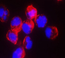 Immunofluorescence: Raji stained with ARG66998 anti-ALIX antibody at 1:400 dilution.