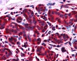 Immunohistochemistry: paraffin embedded Human Breast. (Steamed antigen retrieval with citrate buffer pH 6) stained with ARG63270 anti-ALS2CR1 / NIF3L1 antibody at 2.5 µg/ml dilution followed by AP-staining.