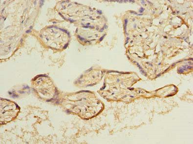 Immunohistochemistry: Paraffin-embedded Human placenta tissue stained with ARG43276 anti-ARL8B antibody at 1:100 dilution.