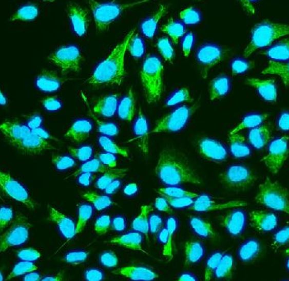 Immunofluorescence: Hela stained with ARG45816 anti-ASAH1 antibody at 5 μg/ml dilution.