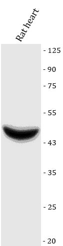 Western blot: Rat heart stained with ARG45816 anti-ASAH1 antibody at 0.5 μg/ml dilution.