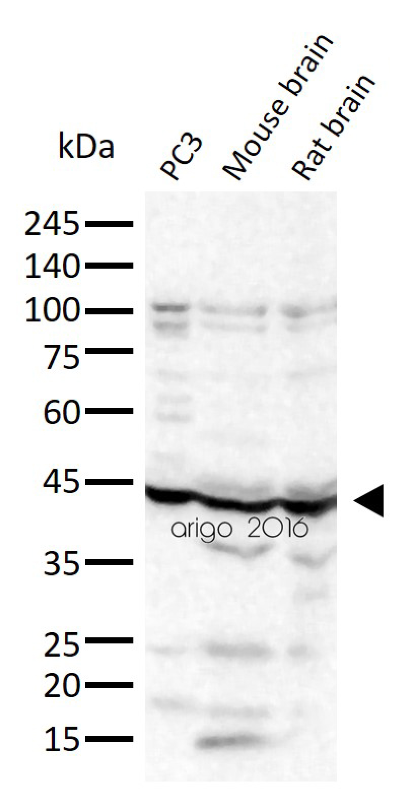| Storage Instruction | For continuous use, store undiluted antibody at 2-8°C for up to a week. For long-term storage, aliquot and store at -20°C. Storage in frost free freezers is not recommended. Avoid repeated freeze/thaw cycles. Suggest spin the vial prior to opening. The antibody solution should be gently mixed before use. |