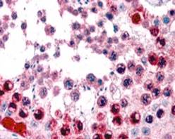 Immunohistochemistry: paraffin embedded Human Testis. (Steamed antigen retrieval with citrate buffer pH 6) stained with ARG63137 anti-ATF7 antibody at 3.8 µg/ml dilution followed by AP-staining.