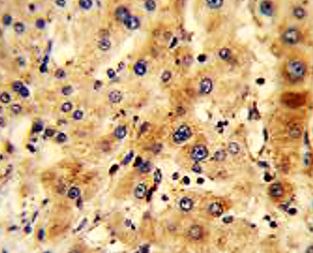 Immunohistochemistry: Formalin-fixed and paraffin-embedded Human liver tissue stained with ARG54812 anti-ATG7 antibody.