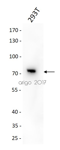 Western blot: 30 µg of 293T cell lysate stained with ARG54812 anti-ATG7 antibody at 1:1000 dilution.