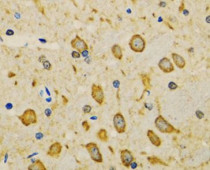 Immunohistochemistry: Paraffin-embedded Rat brain tissue stained with ARG56862 anti-ATG7 antibody at 1:100 dilution (x40 lens).