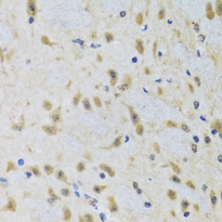 Immunohistochemistry: Paraffin-embedded Mouse brain tissue stained with ARG56862 anti-ATG7 antibody at 1:100 dilution.