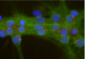 Immunofluorescence: Cultured Rat neurons and glia showing strong staining of neuronal cilia stained with ARG52217 anti-Adenylate cyclase 3 antibody (red) and axonal and dendritic staining of ARG52218 alpha II spectrin (green) revealing the submembraneous cytoskeleton and DNA (blue).