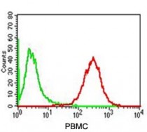 Flow Cytometry: Human PBMC stained with ARG56206 anti-Adipophilin antibody [ADPN1-1] (red) and isotype control (green).