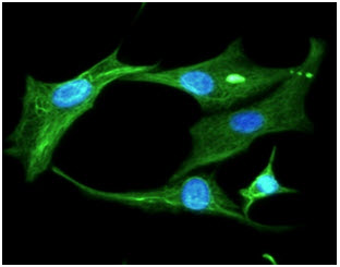 Immunoflorescense: U87MG cell line stained with ARG56936 anti-ApoJ / Clusterin antibody [1A11] at 1:100 (Green).